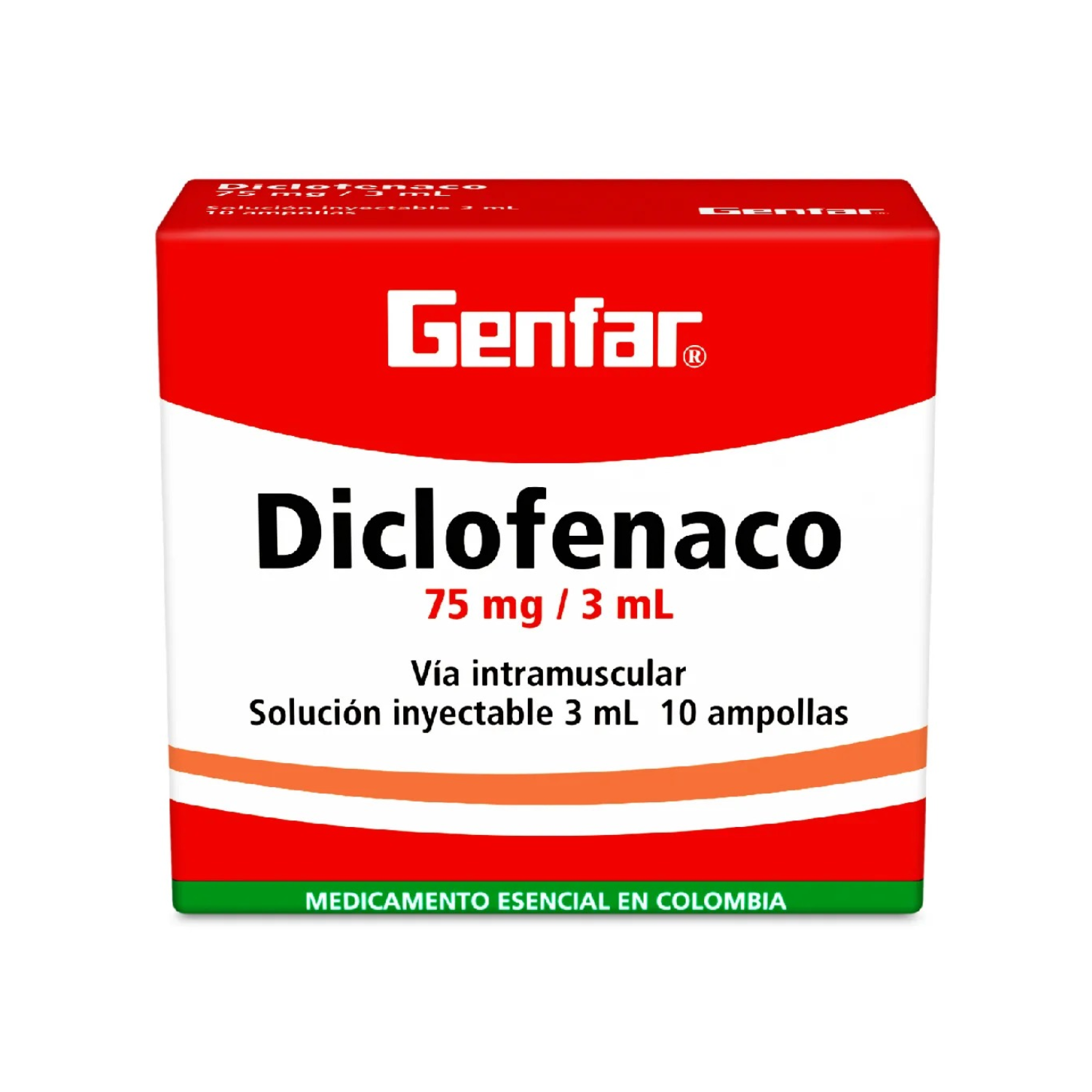 Diclofenaco Sódico 75 mg – 1 Ampolla de 3 ml (Genfar)